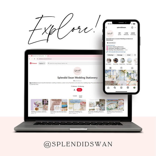I started Splendid Swan because I love painting and being able to share that creativity to make unique wedding invitations, that capture the personality of engaged couples, the charm of their chosen wedding venue and help to tell their love story. Bespoke wedding stationery is my favourite kind of project, so find out how to order custom wedding invitations below, and then get in touch so we can chat about your ideas and how I can help.