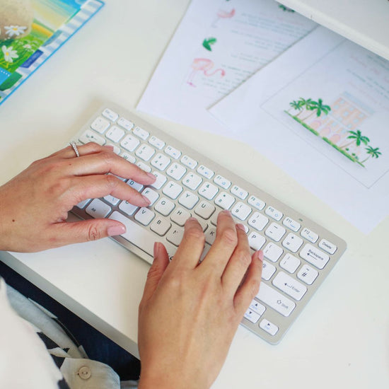 After receiving payment, I will start working on your wedding stationery. As you will see from exploring my collections, most of my wedding invitations are hand painted. This is why clients chose me and what they love most about my wedding stationery design, but it does also mean it takes a little time so please be patient. I complete each project as soon as I can, whilst also ensuring I spend enough time on each element to make it unique and ooze with creative flair.