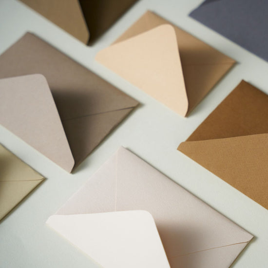 Once your wedding invitations are designed, it’s time to choose the finishing touches. I have a large range of beautiful envelope colours available, ensuring the perfect shade to go with your invitation design. I use thick envelopes that are 100gsm - 135gsm depending on the colour and most have a diamond shaped flap which is suitable for envelope liners.